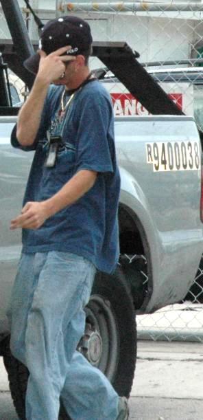The young thief above is part of a ring that steals whatever it can from towed vehicles. A nearby merchant reported seeing several boxes of guns being loaded into the trunk of a car by workers from this unlawful operation.